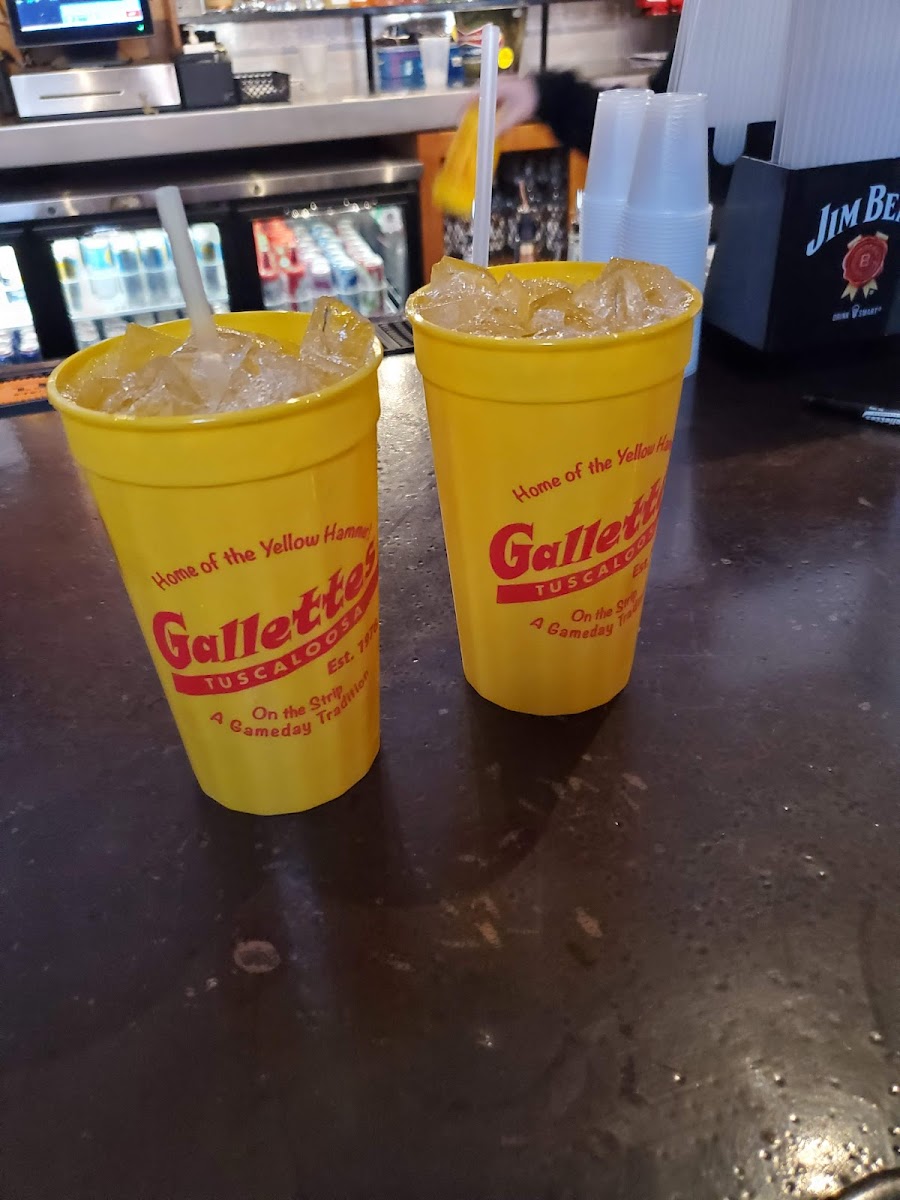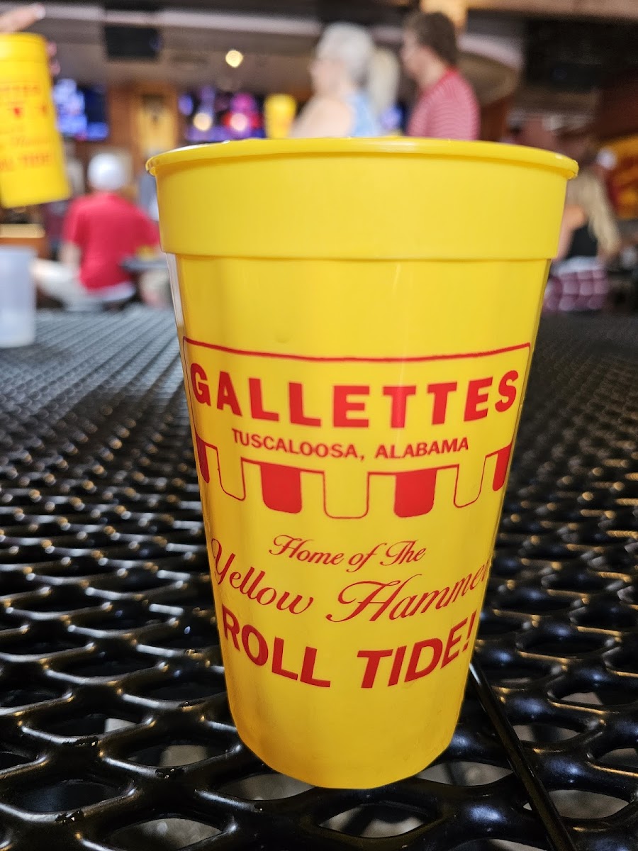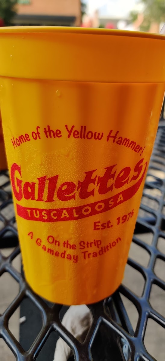 Gallettes is one of the longest-standing bars on the Strip in Tuscaloosa — a bona fide college bar with roots stretching back to 1976.  It’s probably best known for its signature drink, the Yellow Hammer — a strong but deceptively fruit-flavored vodka cocktail served in the classic yellow plastic cups.